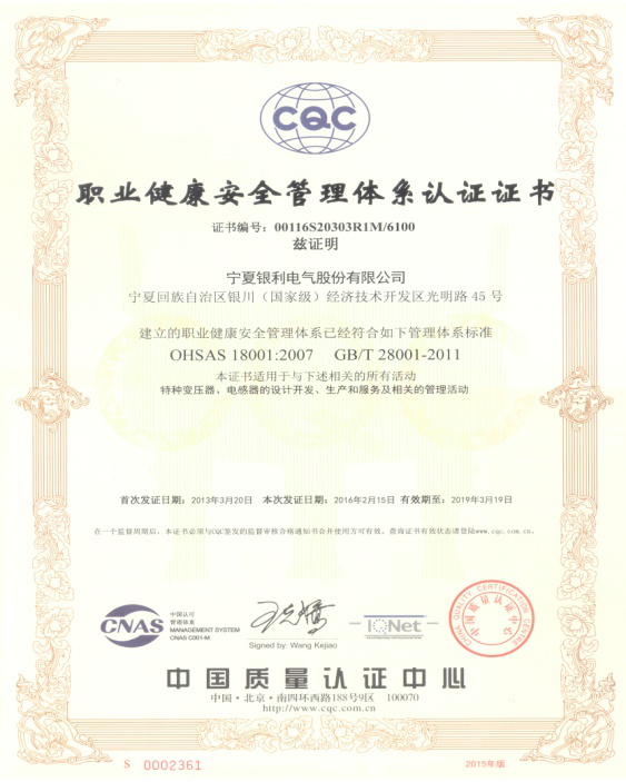 職業(yè)健康安全管理體系證書(shū)